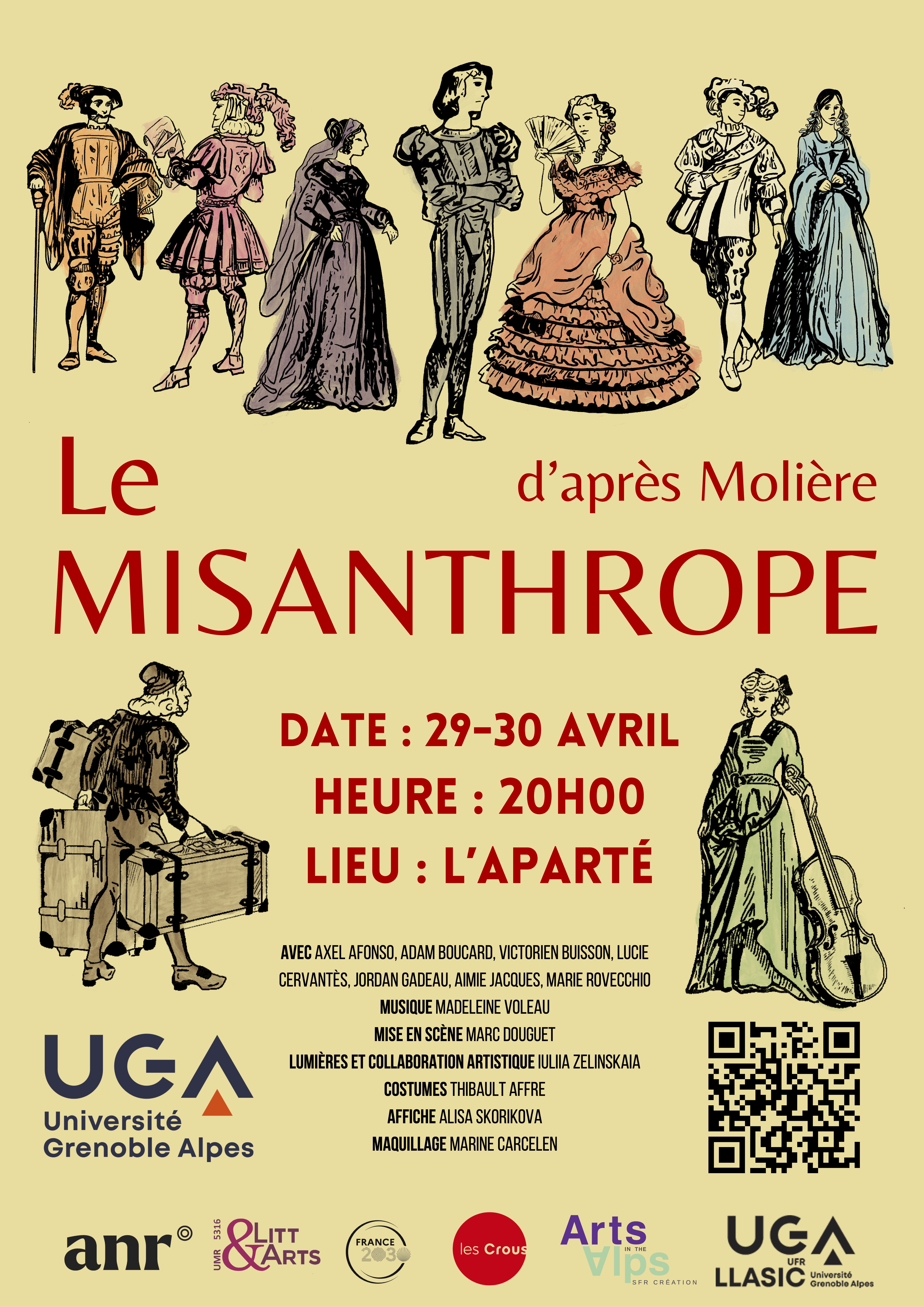 Spectacle présenté par la compagnie La Sphingerie et soutenu par l'Université Grenoble Alpes, la Faculté H3S, l'ANR, France 2030, le département de lettres de l'UFR LLASIC, le Service Culture de l’UGA, l'UMR Litt&Arts, la SFR Création et le CROUS